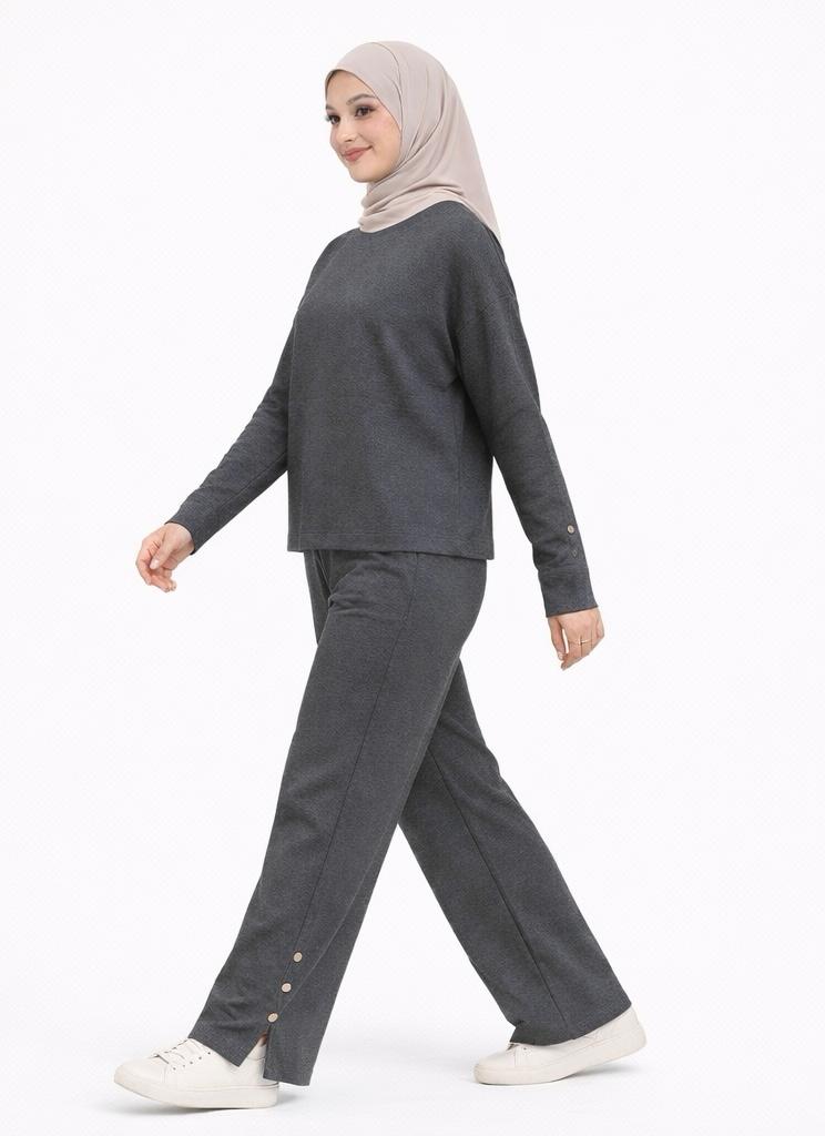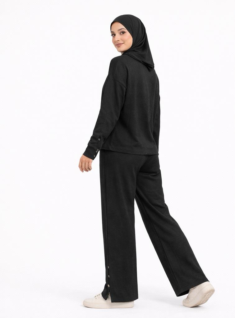 Designed for effortless modest dressing, the Everyday Comfort Co-Ord Set combines relaxed elegance with all-day wearability. Crafted from a soft, breathable fabric, this two-piece set features a modestly cut long-sleeve top paired with wide-leg trousers for a flattering yet comfortable silhouette. Subtle button detailing along the sleeves and pant hems adds a refined touch, making it perfect for both casual outings and elevated everyday looks. Easy to style and easy to wear, this set is a versatile wardrobe essential you’ll reach for again and again.