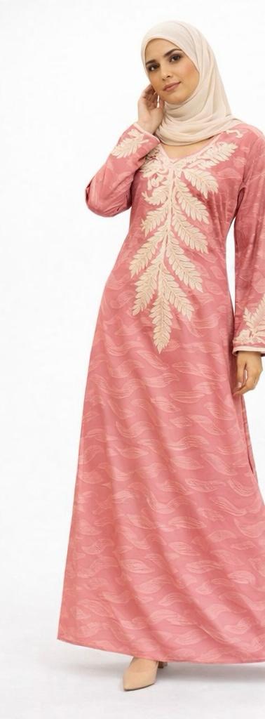 The subtle textured pattern throughout the fabric adds depth and luxury, while the long sleeves with embroidered accents enhance its elevated finish. Designed with a relaxed drape and elongated length, this abaya offers both comfort and sophistication—perfect for formal occasions, festive gatherings, or elegant evening wear.