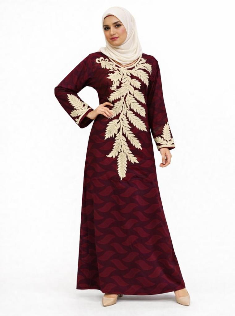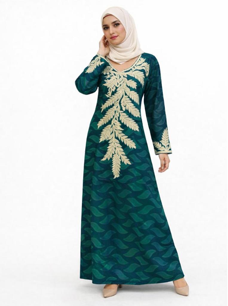 Introducing the Fern Cascade Embroidered Abaya, a statement piece designed for women who love refined modest elegance. Crafted in a flowing, lightweight fabric, this extra-long abaya features exquisite ivory leaf embroidery cascading down the front, creating a striking yet graceful silhouette.
