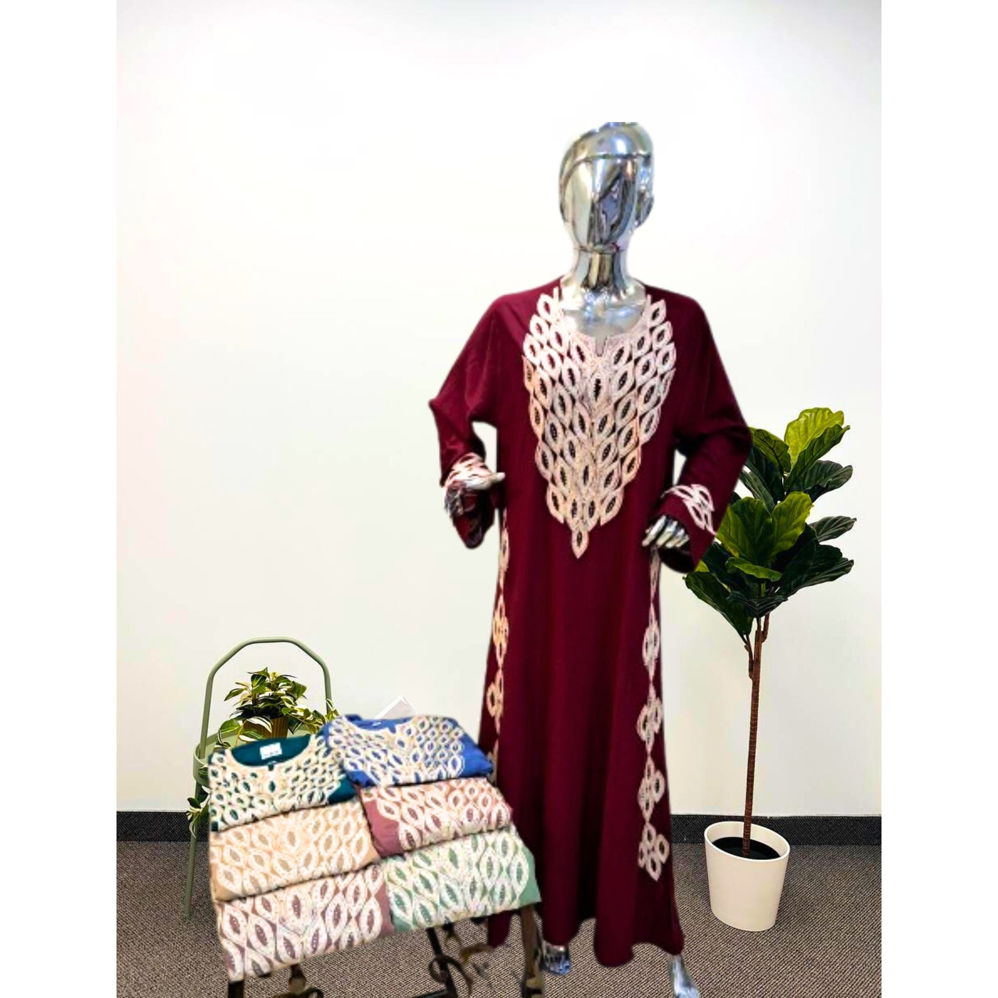 A traditional, loose-fitting dress known for its flowy silhouette and modest design. It features intricate embroidery, embellishments, and colorful prints, making it suitable for both casual wear and special occasions. The jalabiya combines comfort with elegance.