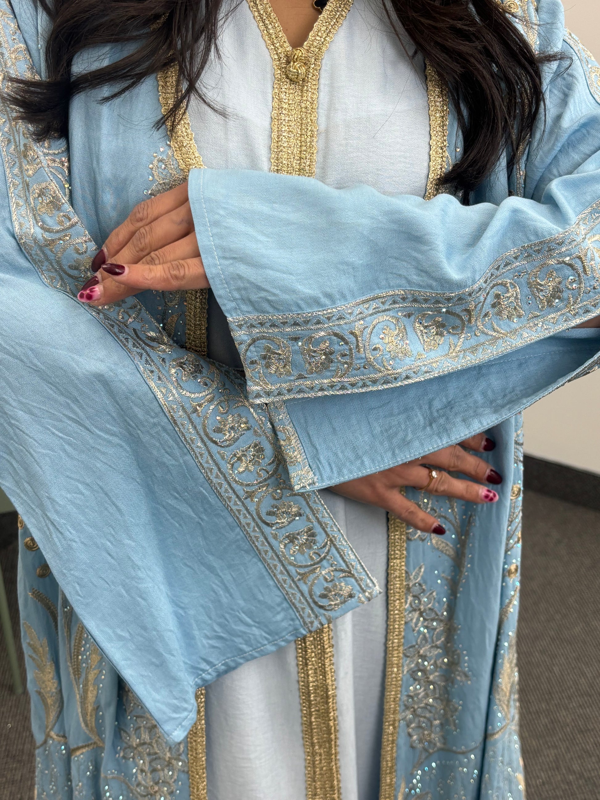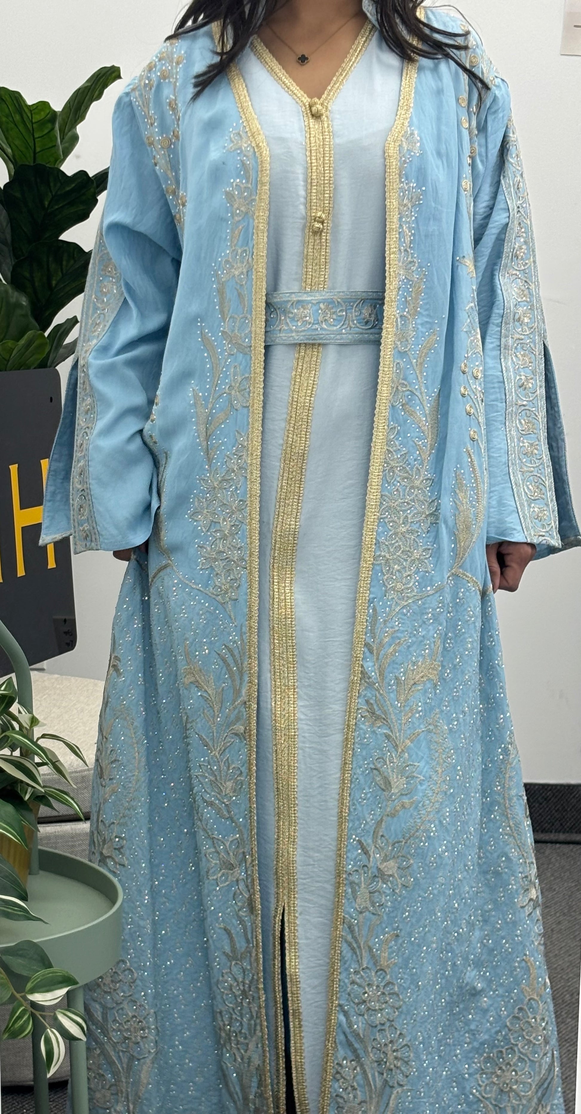 This kaftan pairs beautifully with heels and statement accessories, offering a refined and modest look for evening wear.