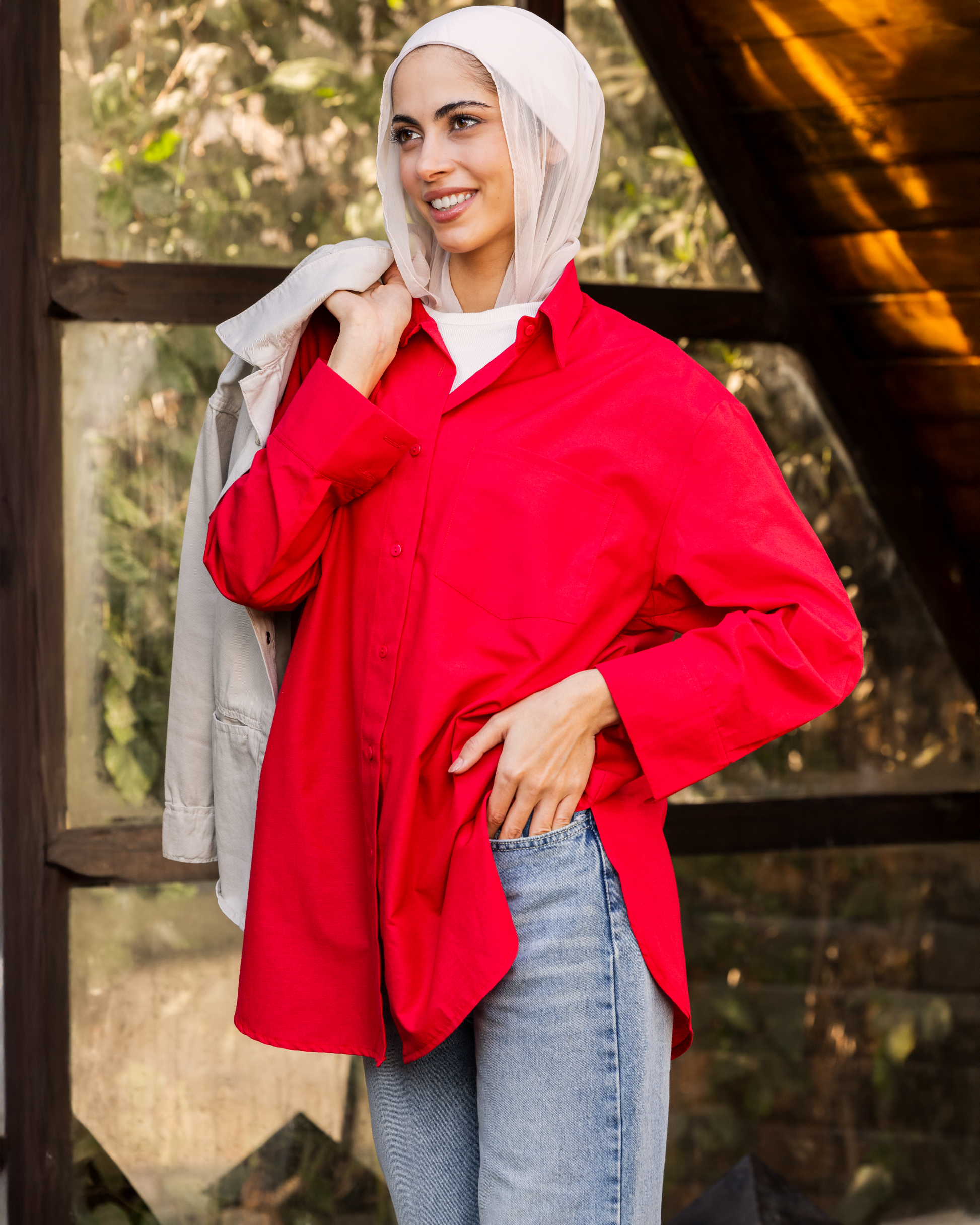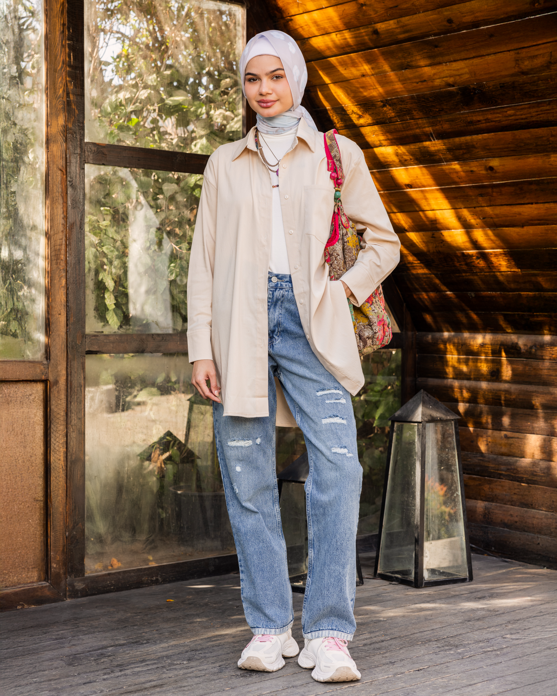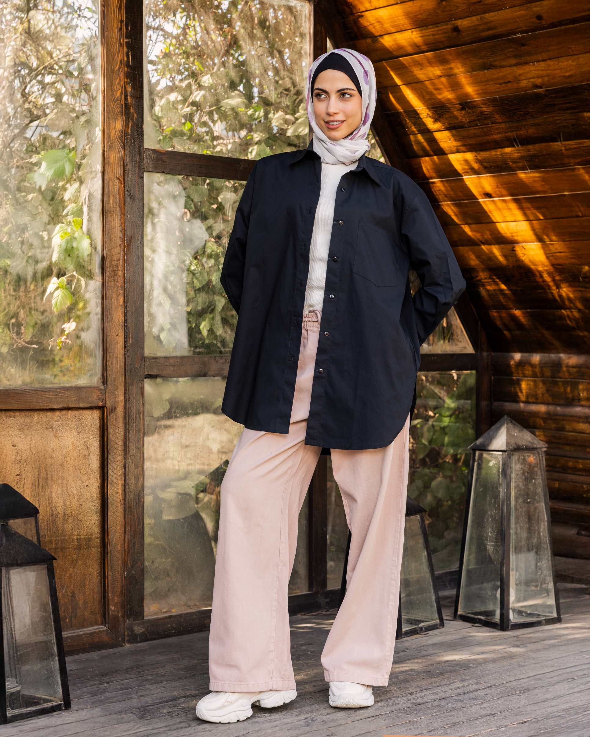 A versatile and modest wardrobe staple, designed with a clean, minimalist silhouette for everyday elegance. Made from lightweight, breathable fabric, it offers comfort and ease of movement. Its long length provides extra coverage, making it ideal for modest styling or layering. Perfect for pairing with trousers, jeans, or skirts, this shirt works well for both casual and semi-formal occasions, offering a simple yet polished look.