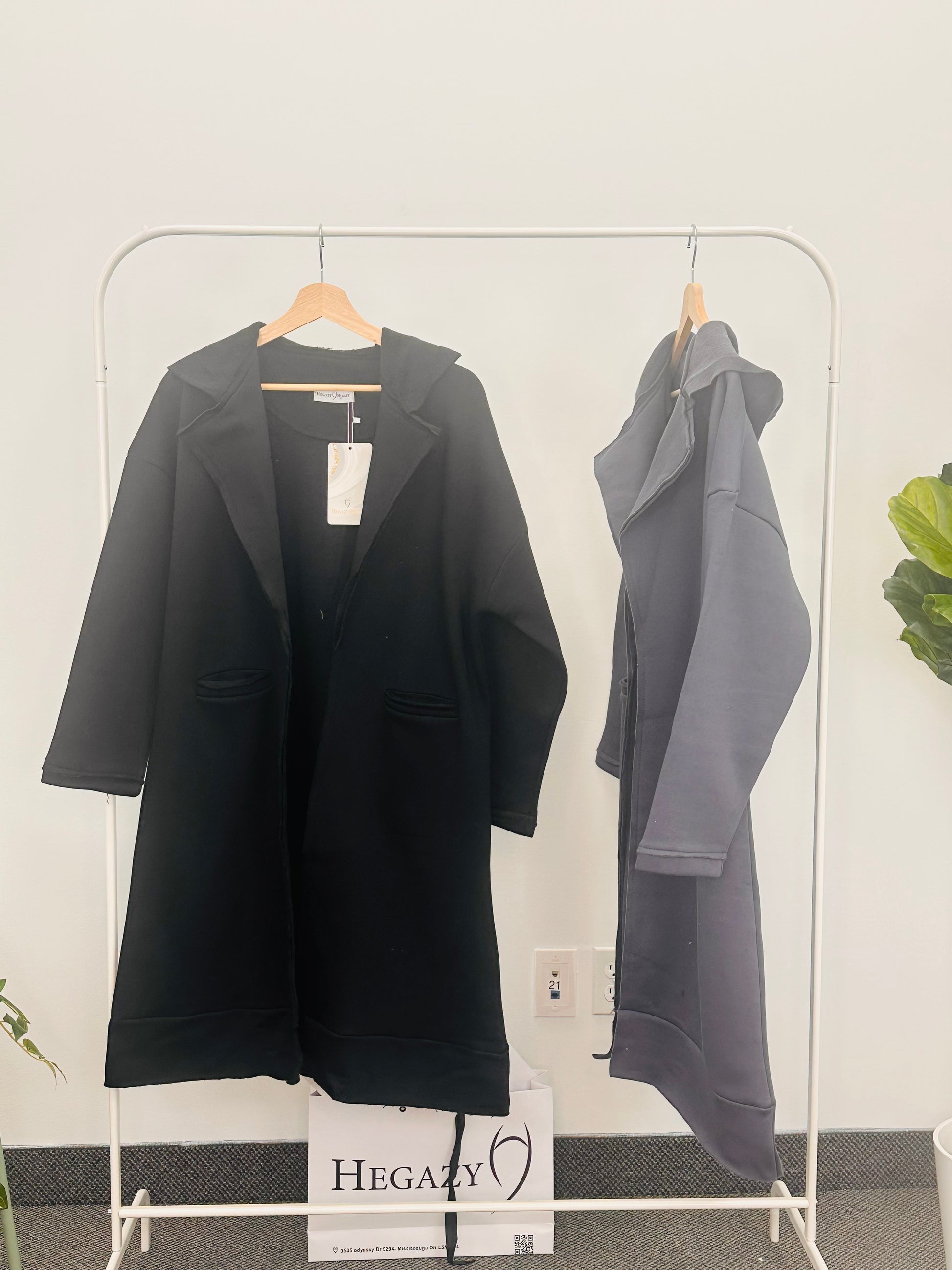 A stylish and warm outerwear piece designed for colder seasons. Made from Melton wool, it offers a thick, durable, and slightly textured finish, providing excellent insulation and a sophisticated look. The open-front design allows for easy layering, while the attached hood adds extra warmth and protection against the elements. With its long length, this jacket pairs well with both casual and formal outfits, making it a versatile wardrobe essential for winter and fall.