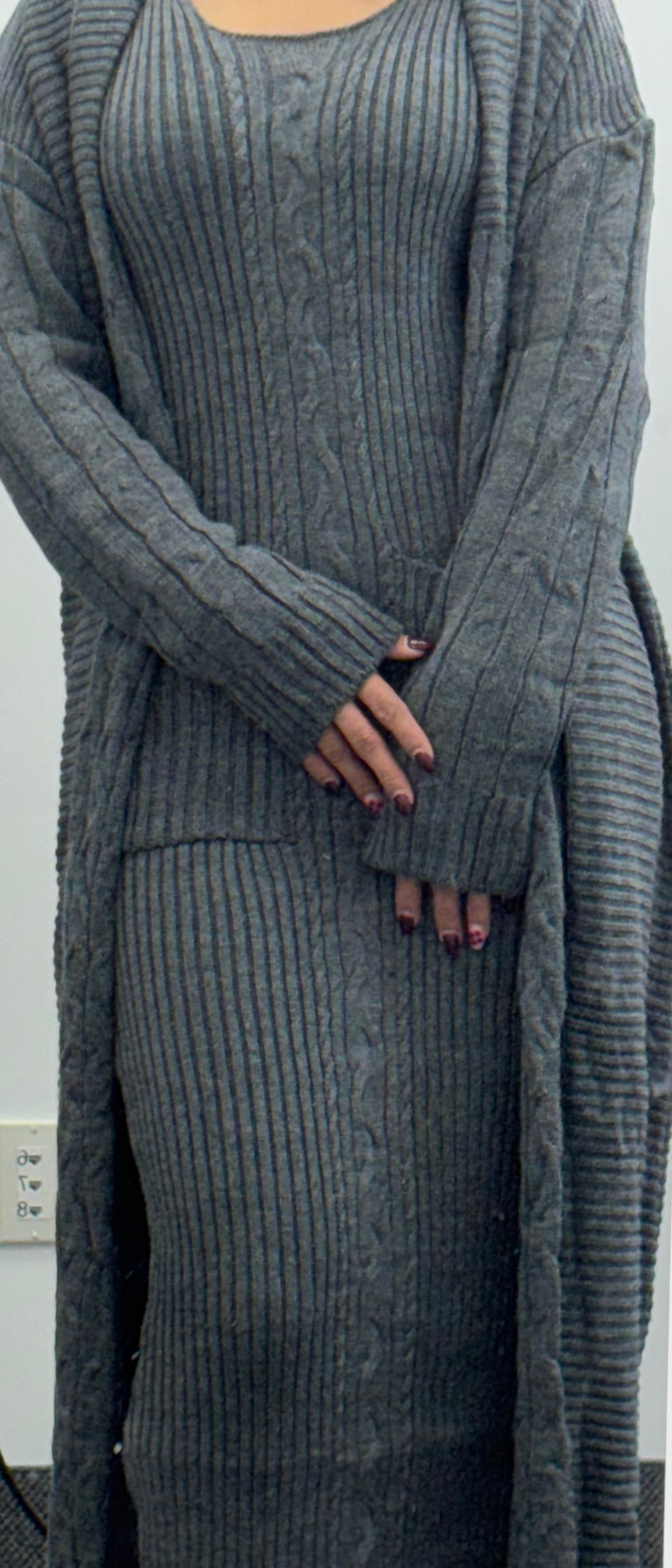 Set 00162 knitwear long jacket + cut dress