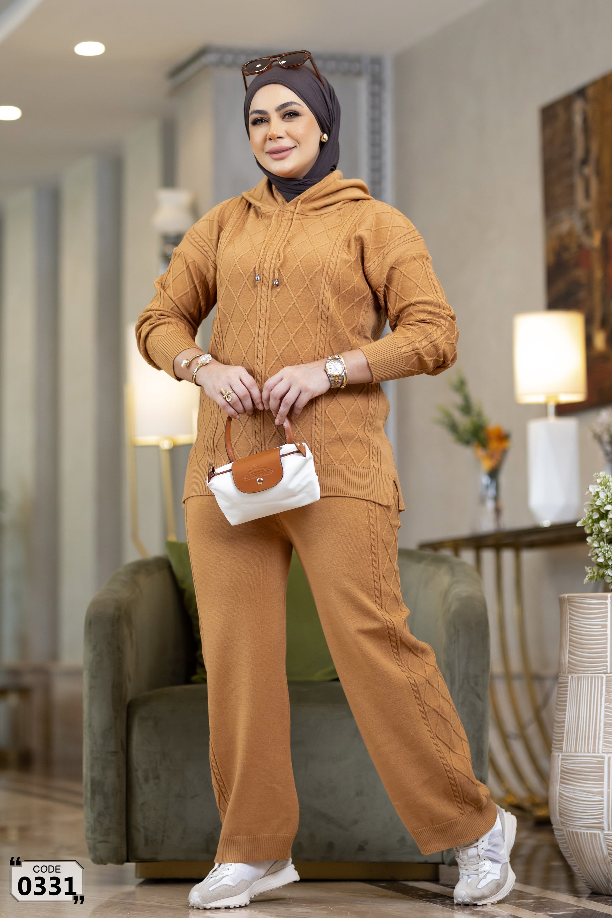 “A refined two-piece knit set designed for effortless sophistication and all-day comfort. Featuring a beautifully structured turtleneck sweater with delicate ribbed detailing at the cuffs and hem, paired with relaxed wide-leg pants for a graceful, flowing silhouette. The soft, premium fabric drapes elegantly, offering a luxurious feel while maintaining a modern, polished look—perfect for elevated casual wear or chic lounging.”
