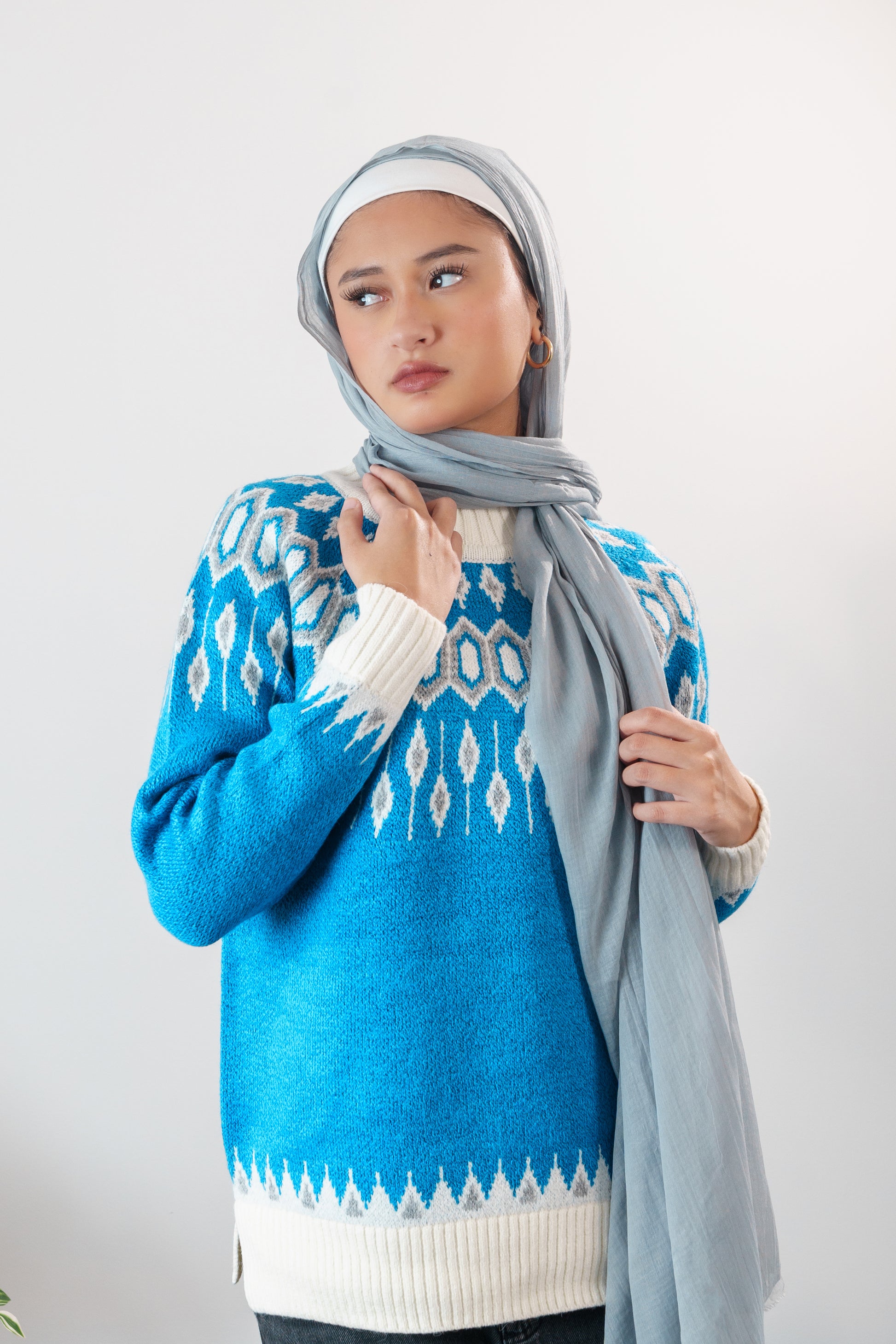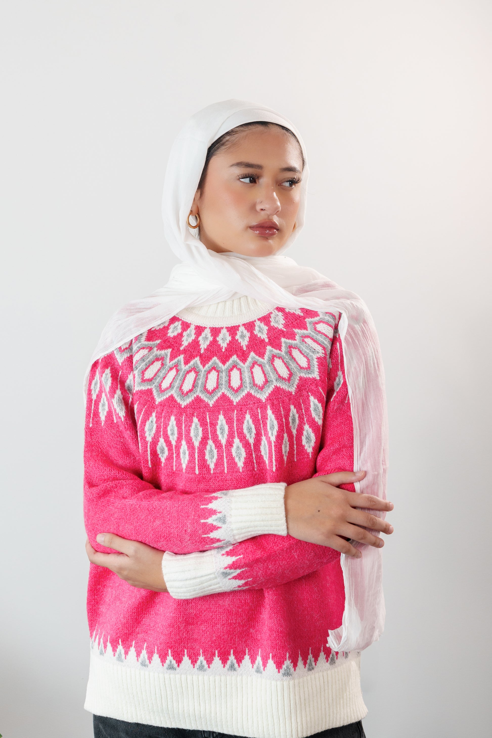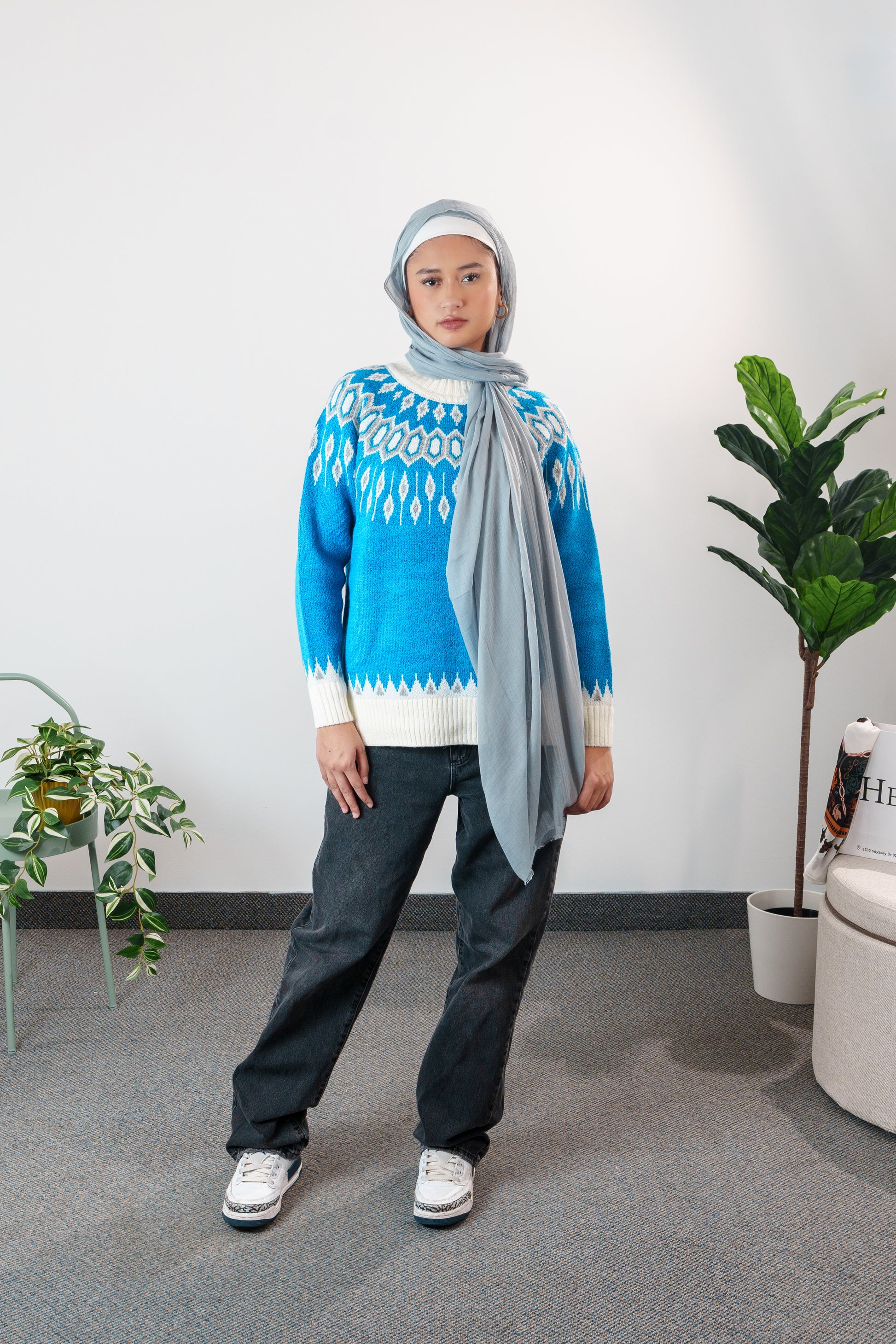 Pull confortable avec un motif détaillé le long de l'encolure et des poignets, associé à un jean coupe décontractée. La combinaison est décontractée et élégante, parfaite pour un usage quotidien. N'hésitez pas à me contacter si vous avez des questions ou si vous avez besoin de plus de détails !