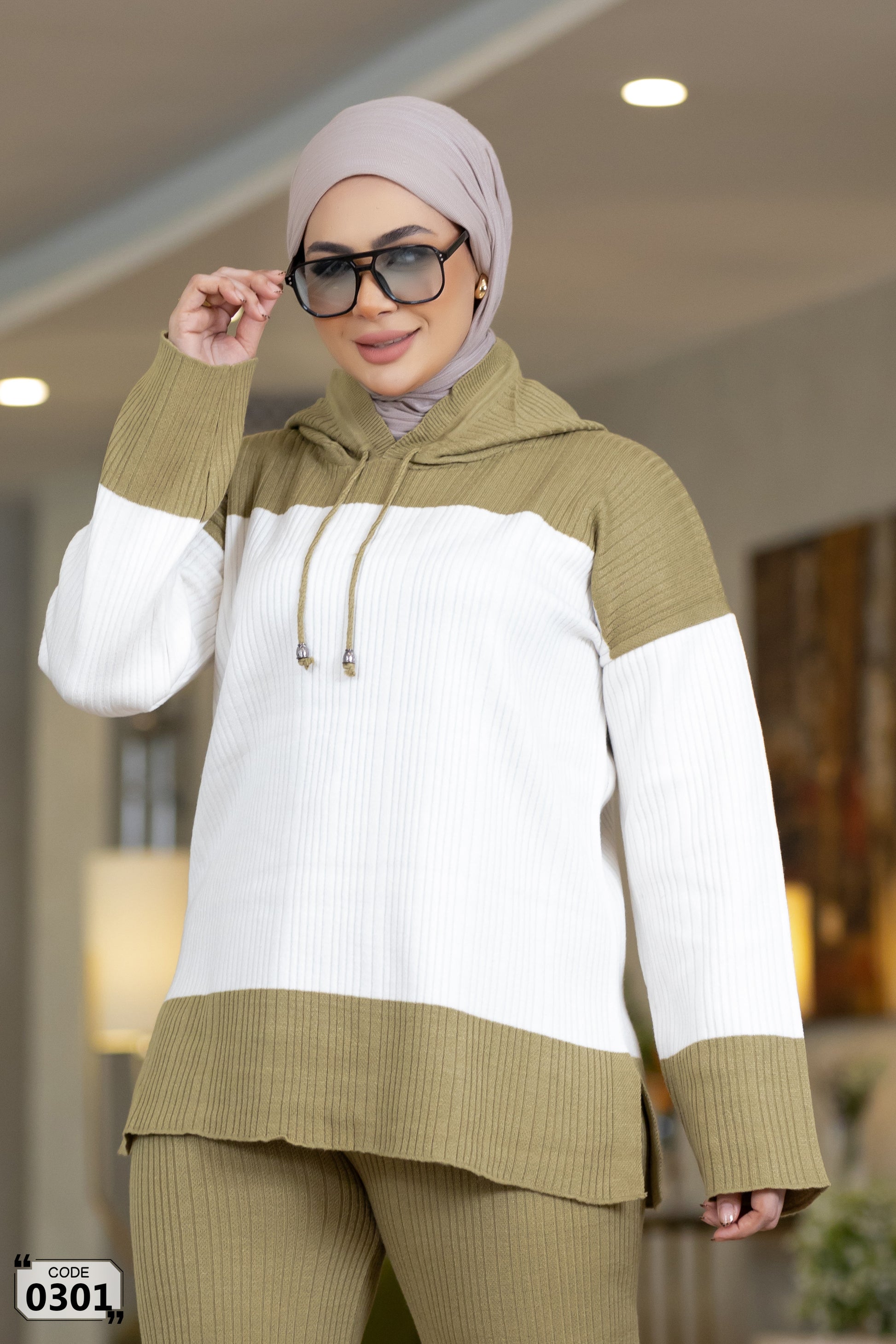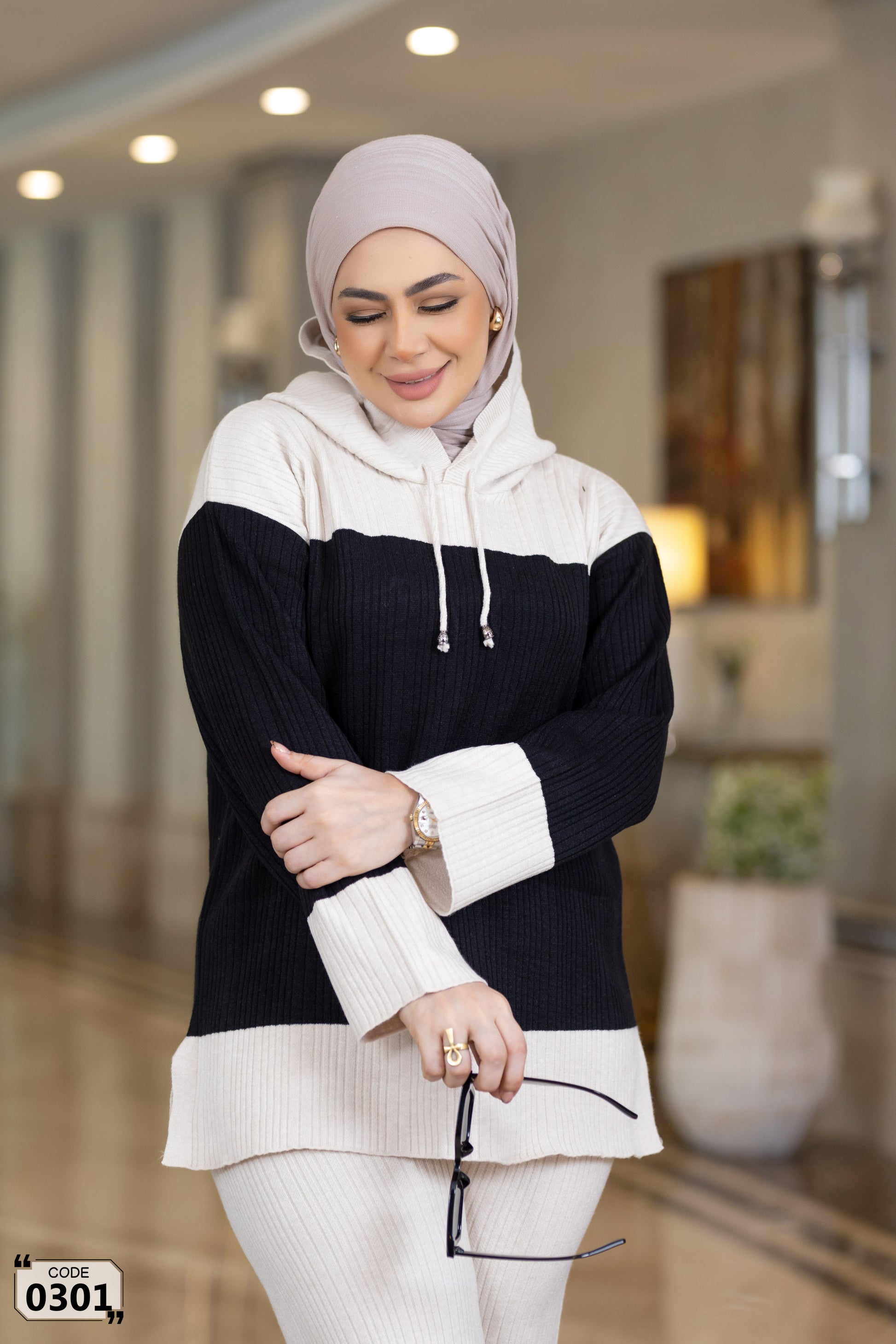 Elevate your everyday style with this beautifully crafted two-tone lounge set. Designed for comfort without compromising on elegance, this matching top and pants set features a soft ribbed knit texture that flatters while keeping you cozy.
