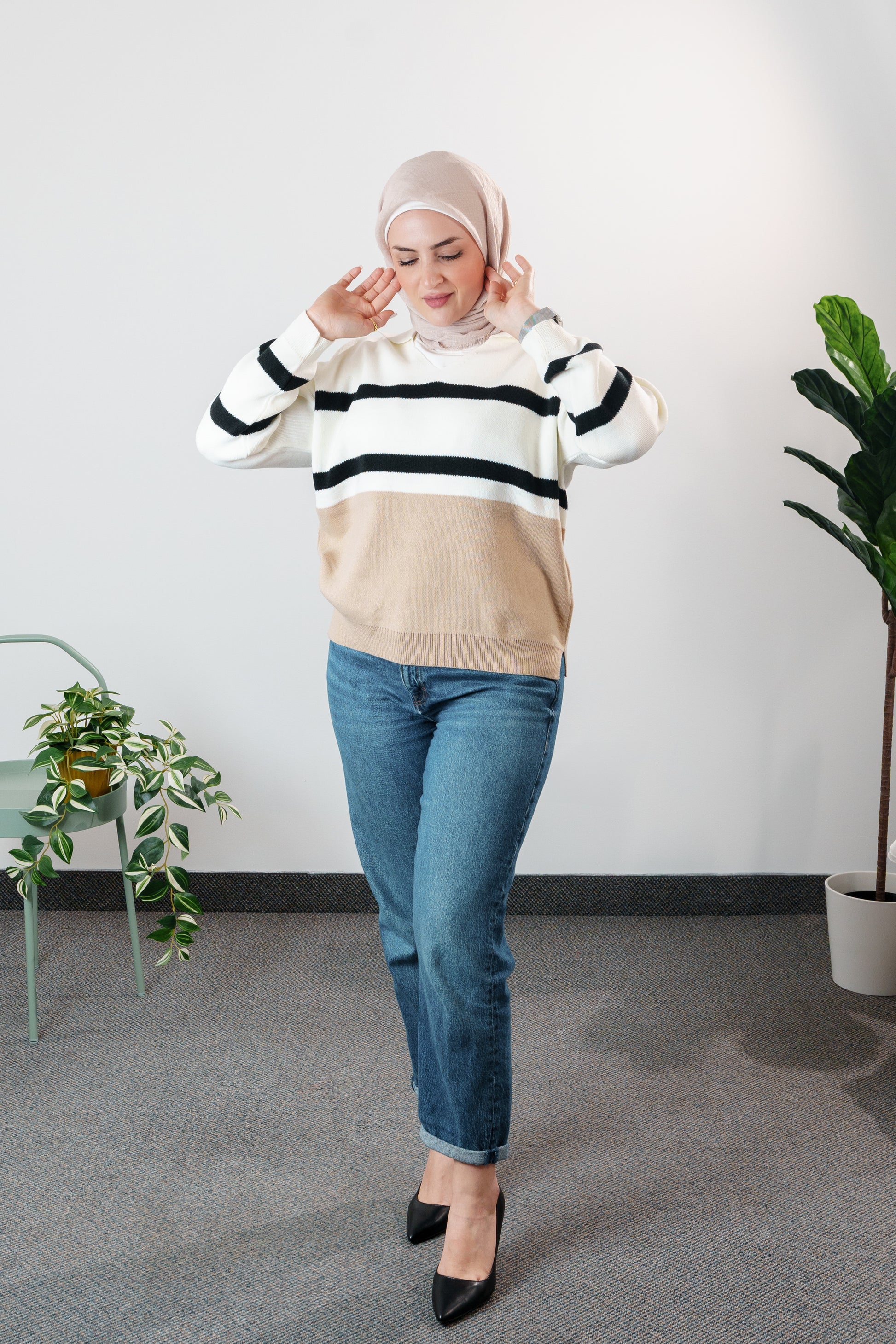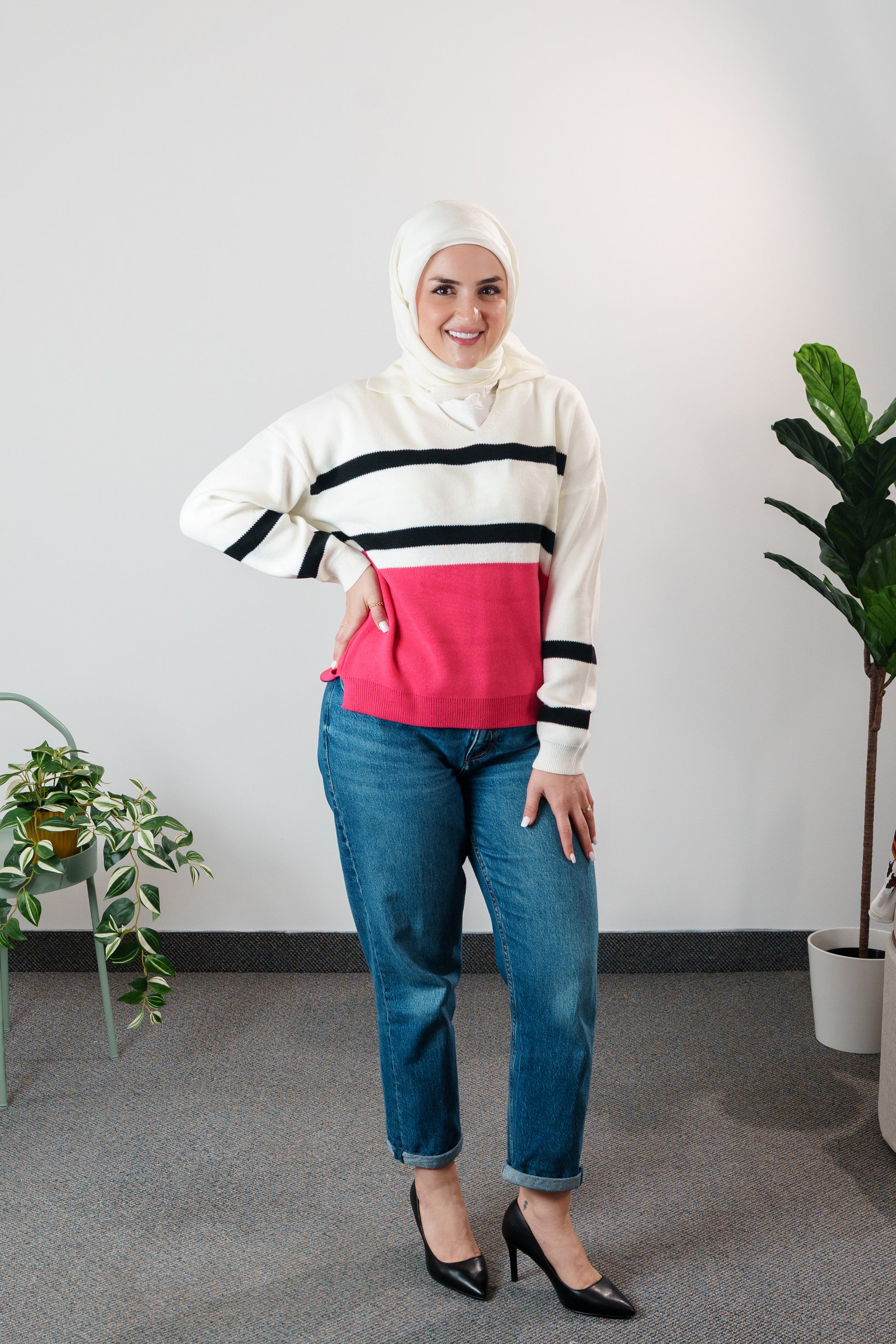 Stay cozy and stylish with our Women's Striped Knit Sweater. Perfect for any occasion, this sweater combines fashionable stripes with a comfortable fit.