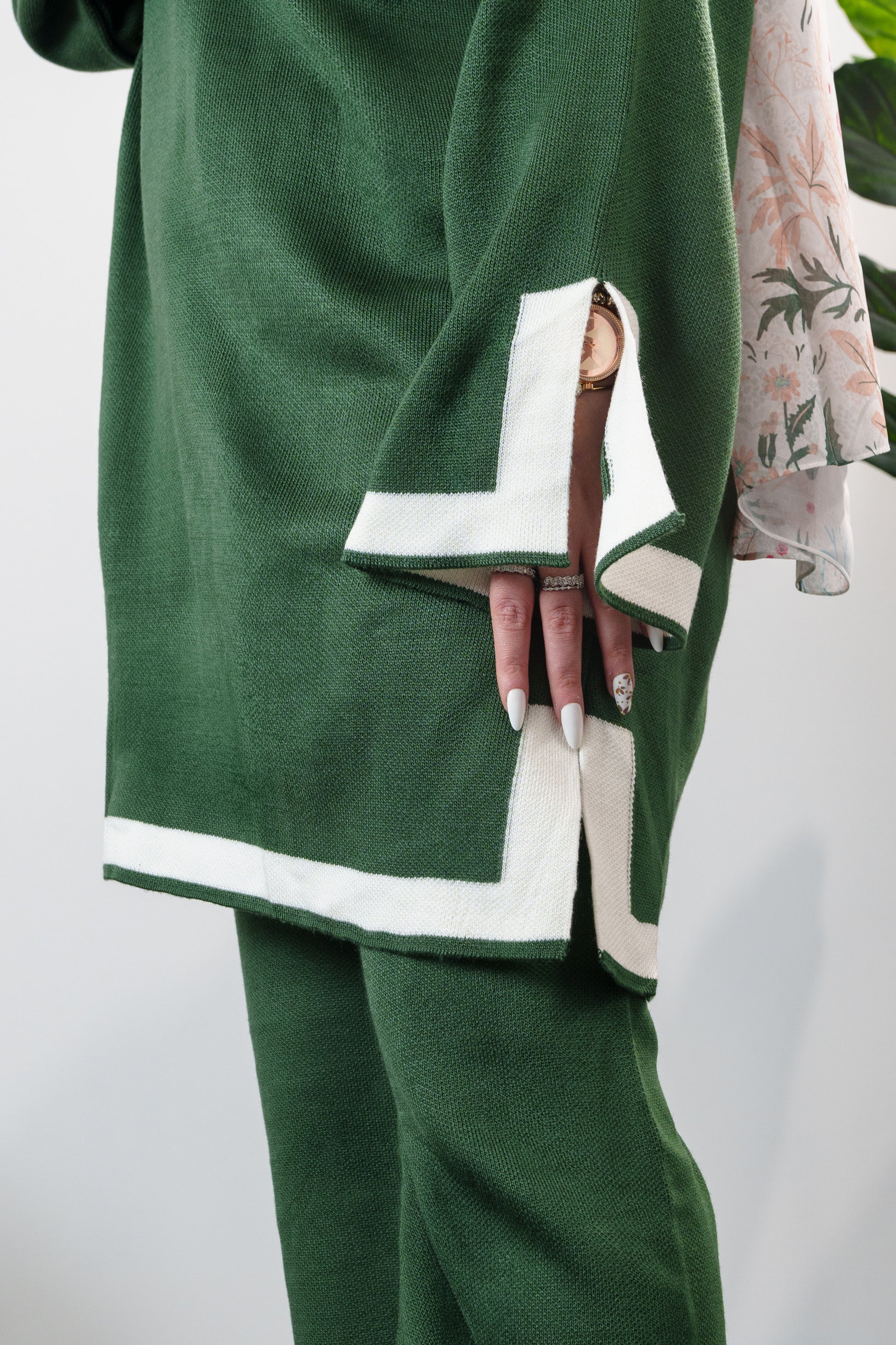 Embrace elegance with our Women's Two-Piece Long Tunic Set, designed for comfort and style. This chic ensemble features a beautiful green palette, perfect for both casual and formal occasions.