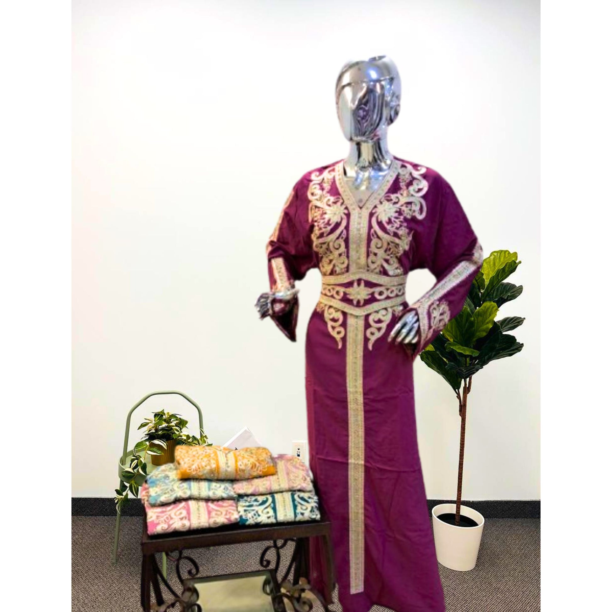 A traditional, loose-fitting dress known for its flowy silhouette and modest design. It features intricate embroidery, embellishments, and colorful prints, making it suitable for both casual wear and special occasions. The jalabiya combines comfort with elegance.