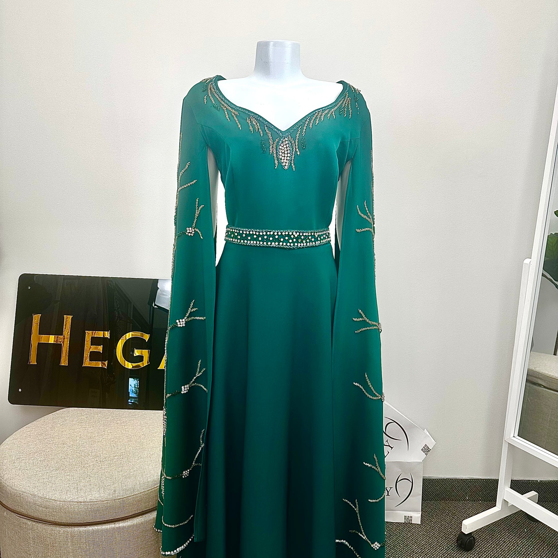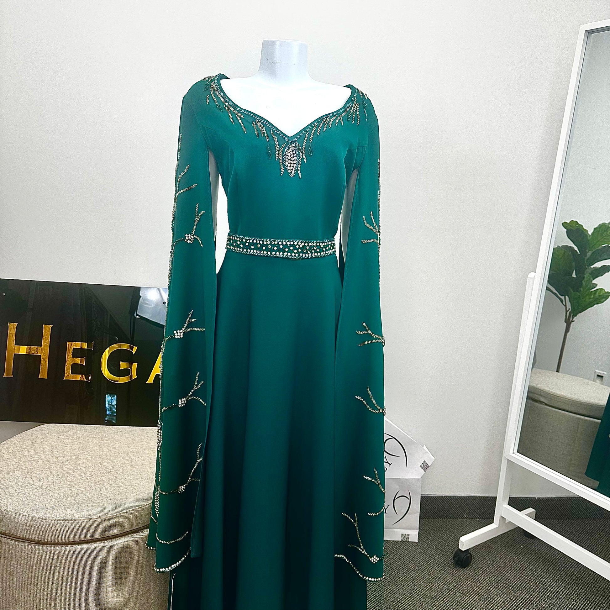 Elegant and luxurious evening kaftan designed for special occasions and formal events. Made from high-quality, flowing fabric, it features a graceful, loose-fitting silhouette that provides both comfort and sophistication.