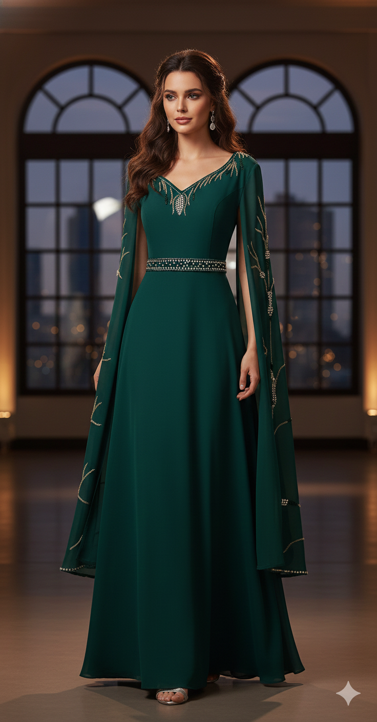 This kaftan pairs beautifully with heels and statement accessories, offering a refined and modest look for evening wear.