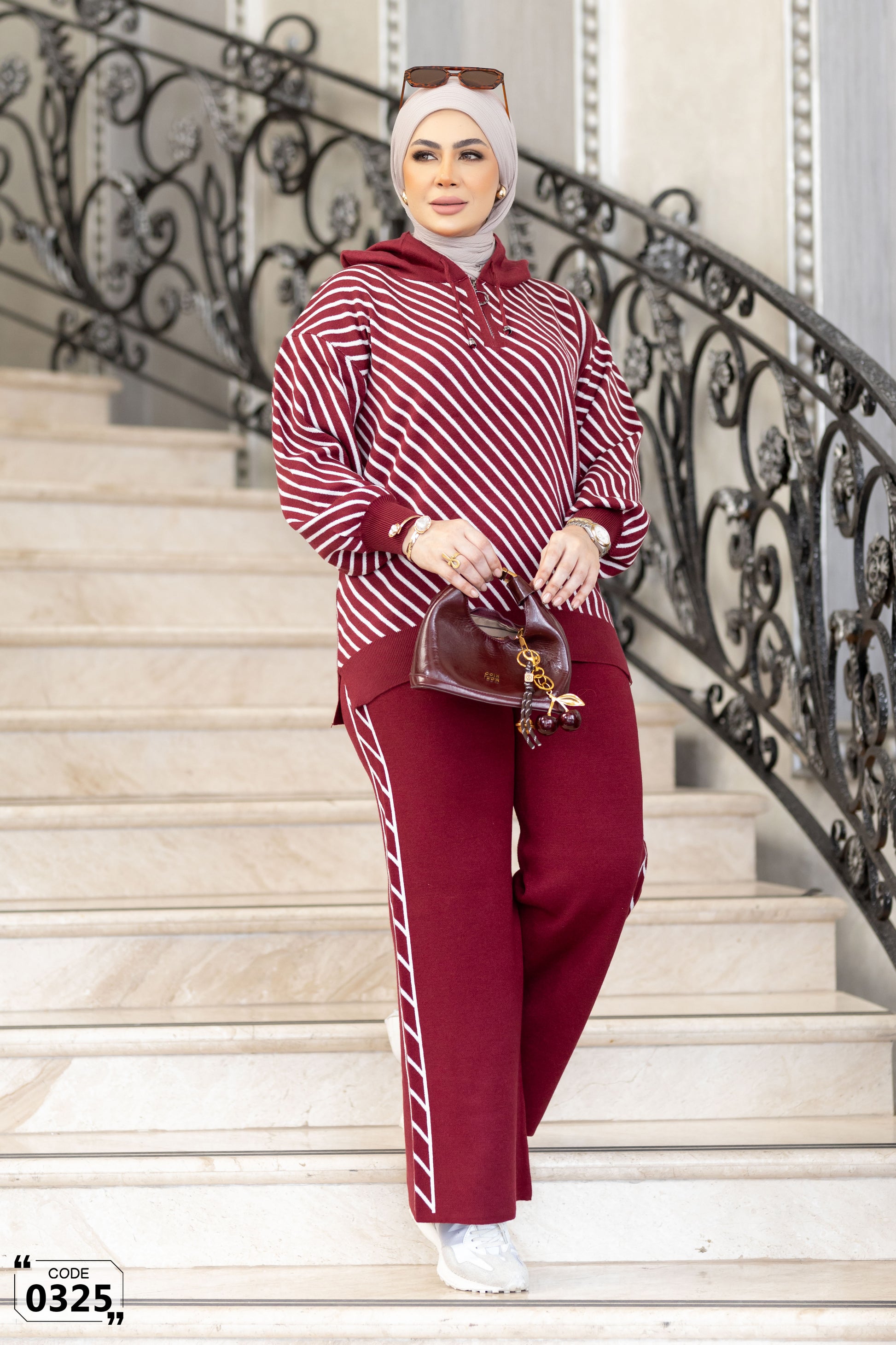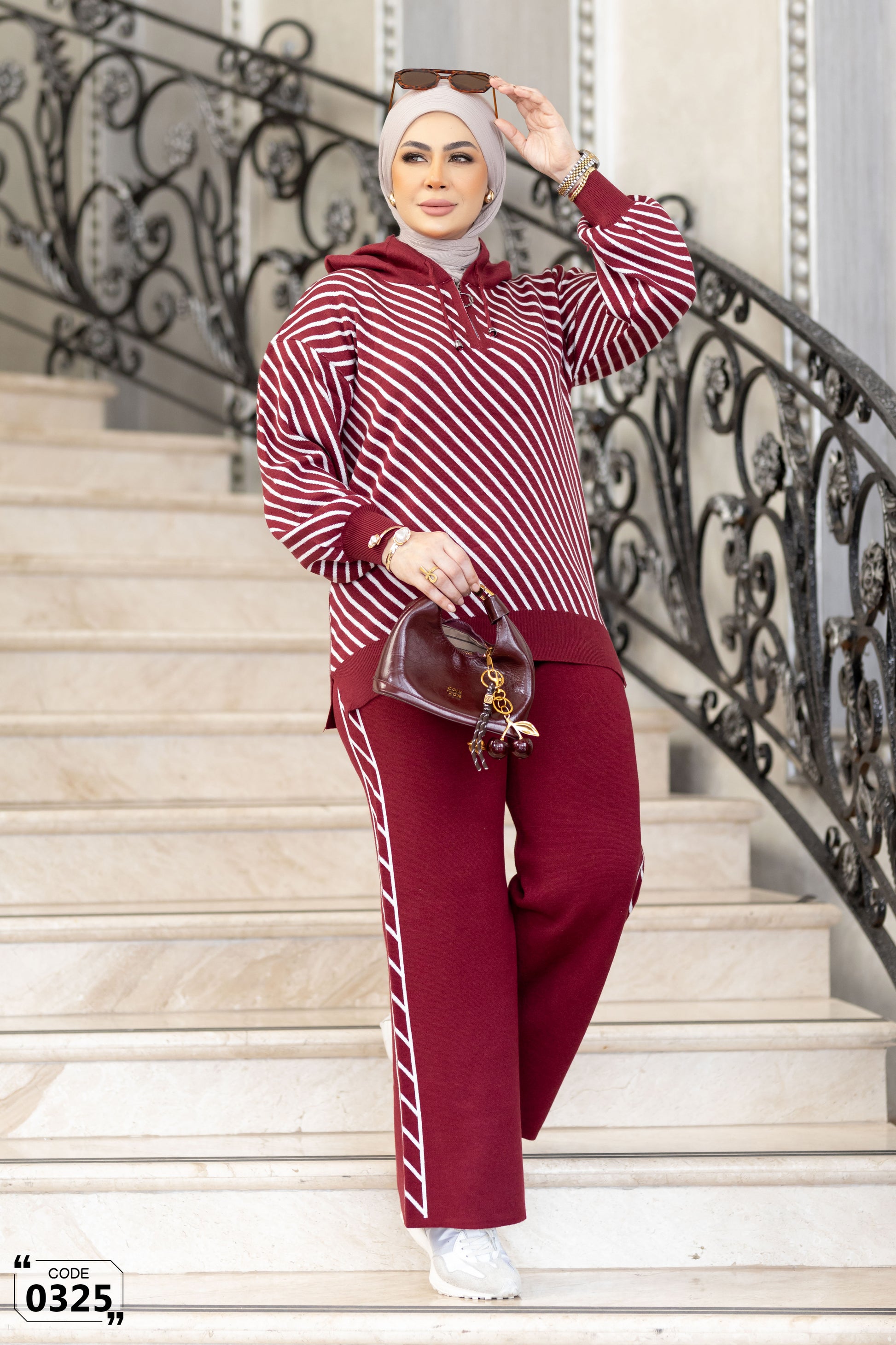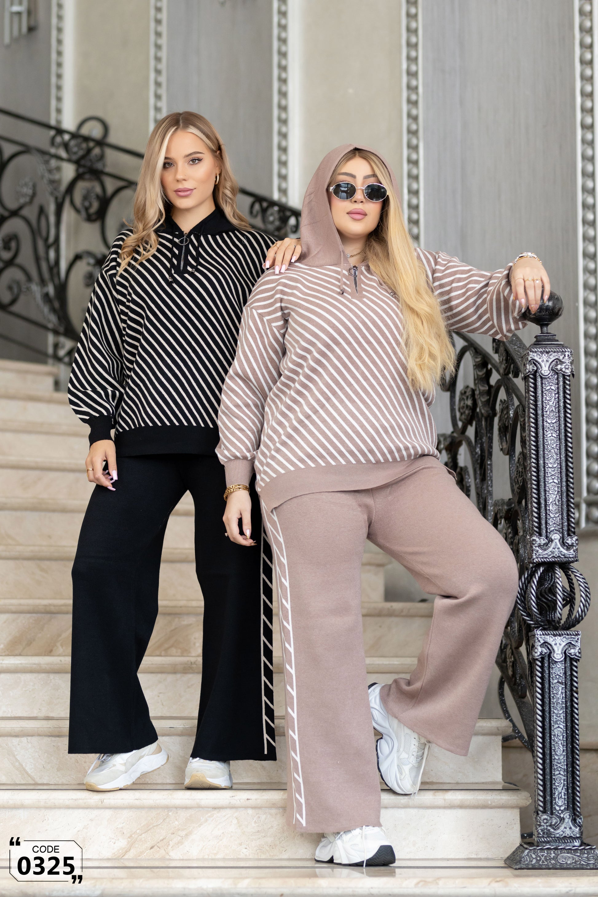 Effortless elegance meets everyday comfort in this chic two-piece knit set. The top features soft beige and white stripes that create a fresh, modern look, complemented by a relaxed fit and cozy ribbed finishes. Its subtle hoodie detail adds a touch of casual sophistication without compromising style.