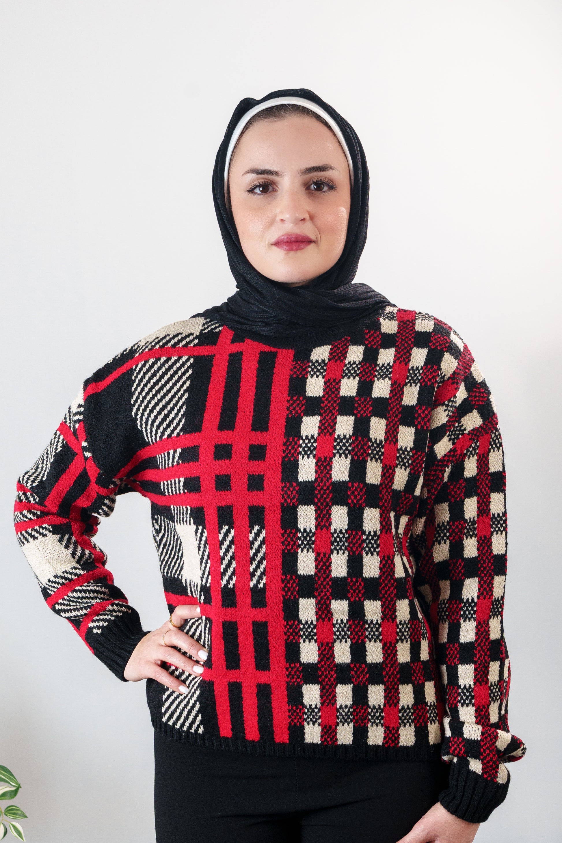 geometric shapes creating a bold and striking design. It offers a contemporary style, perfect for making a fashion statement. Let me know if you need more details!